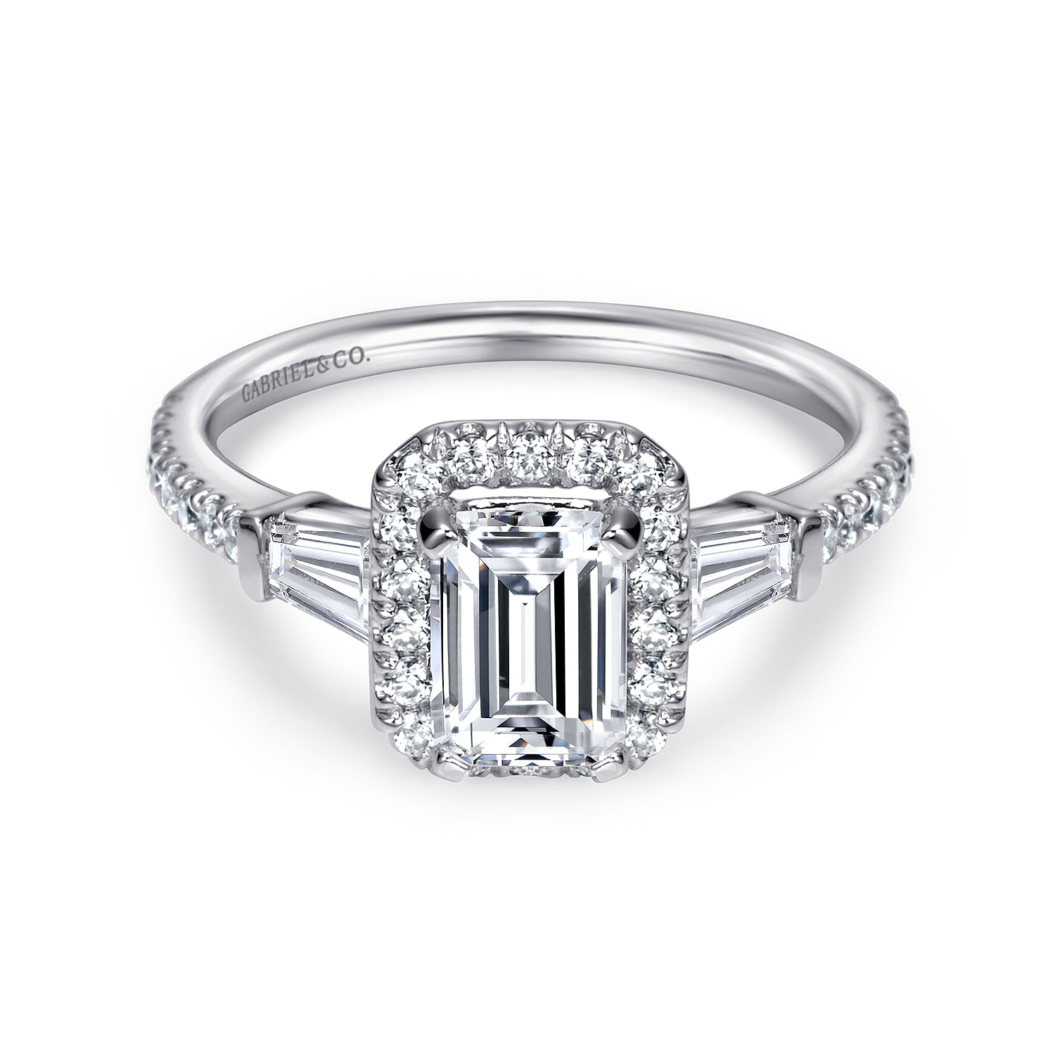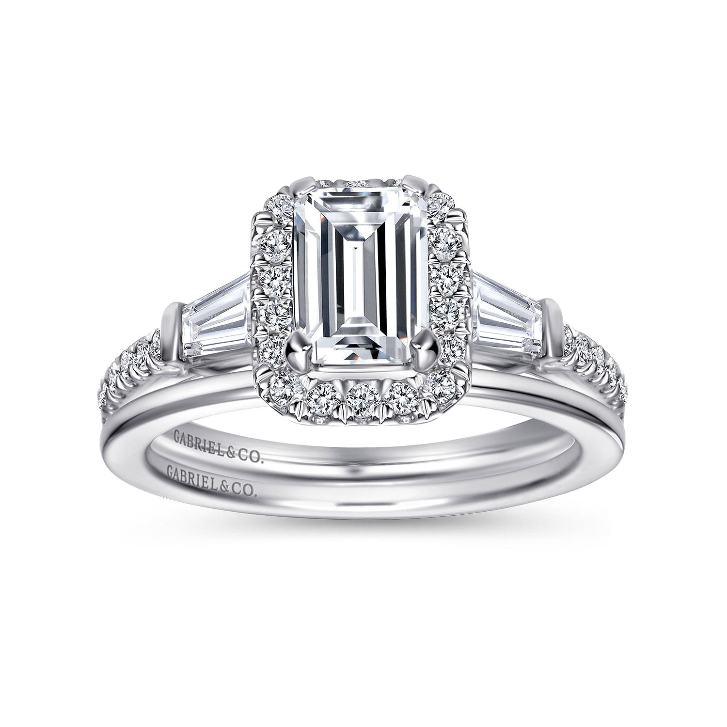 14K White Gold Emerald Halo Diamond Channel Set Engagement Ring