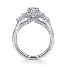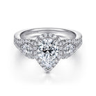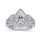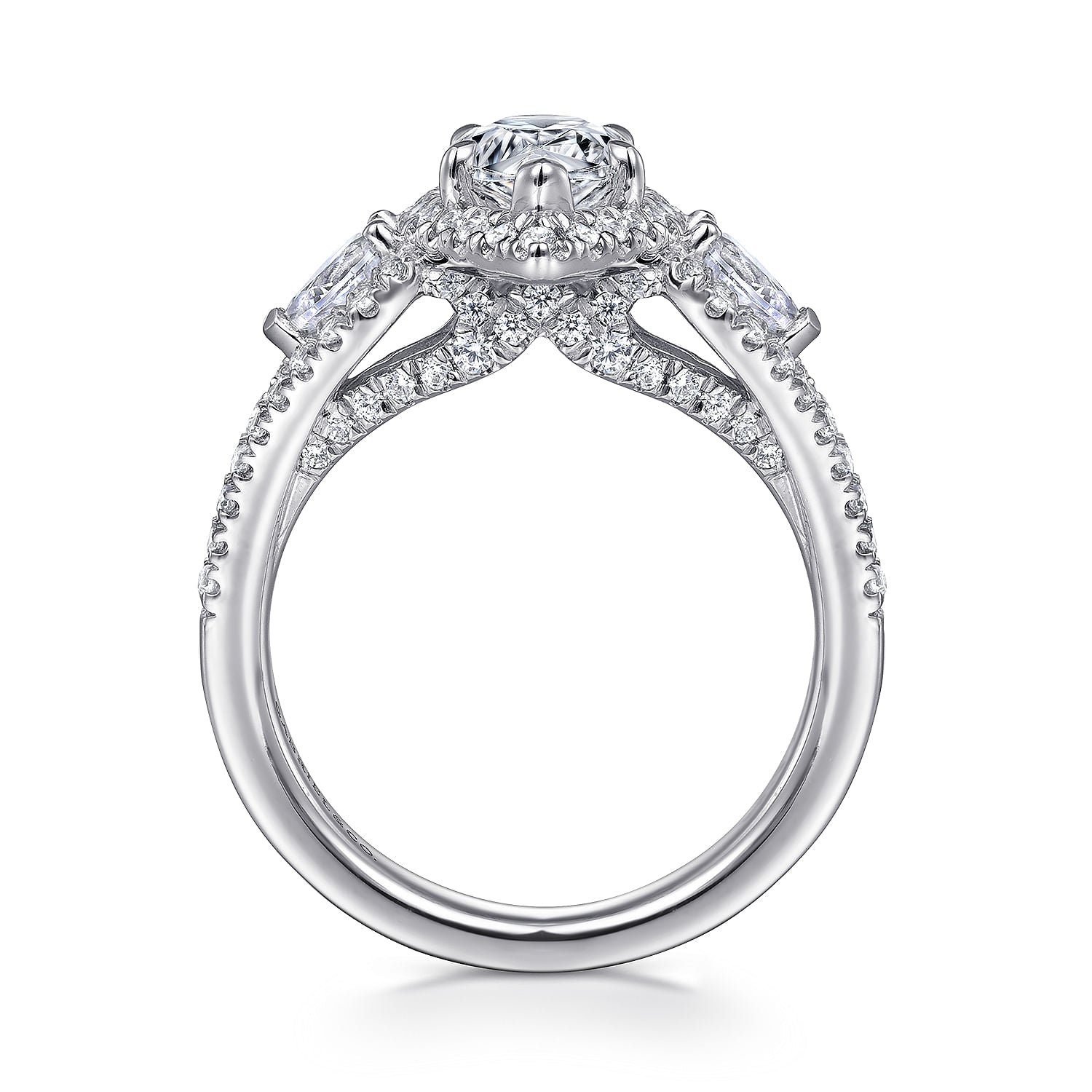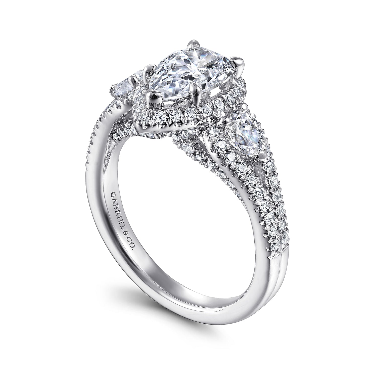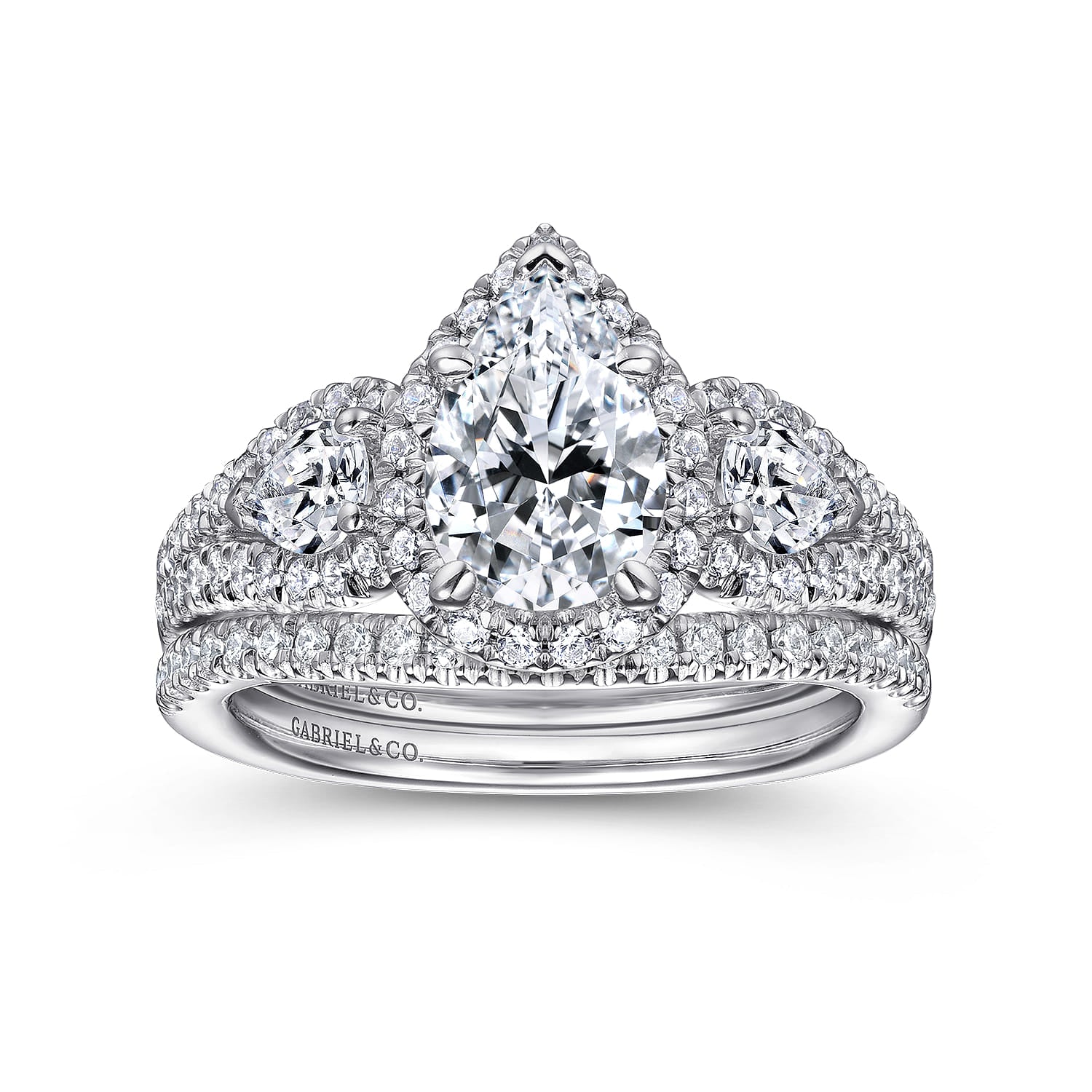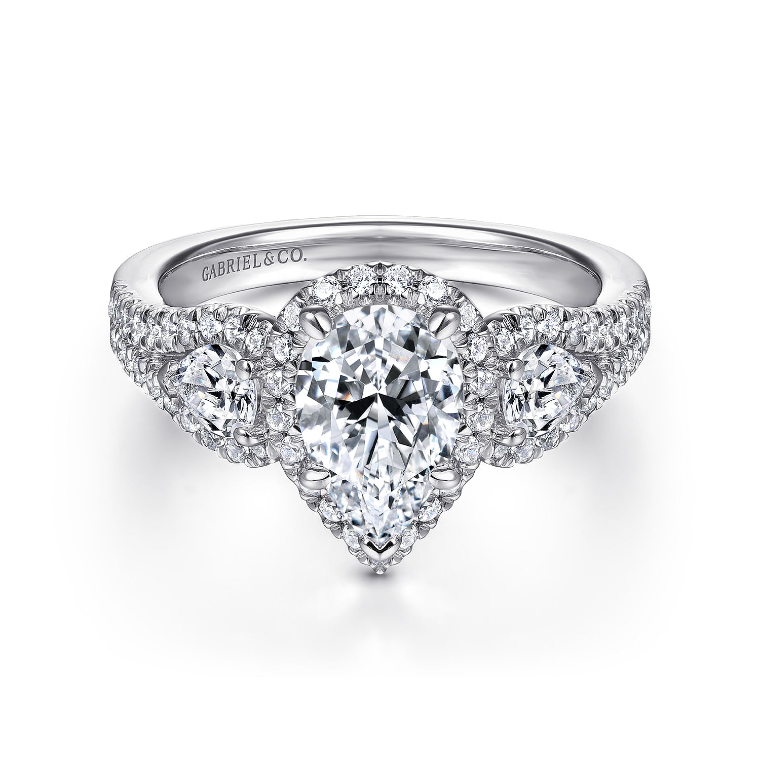 14K White Gold Pear Shape Three Stone Halo Diamond Engagement Ring