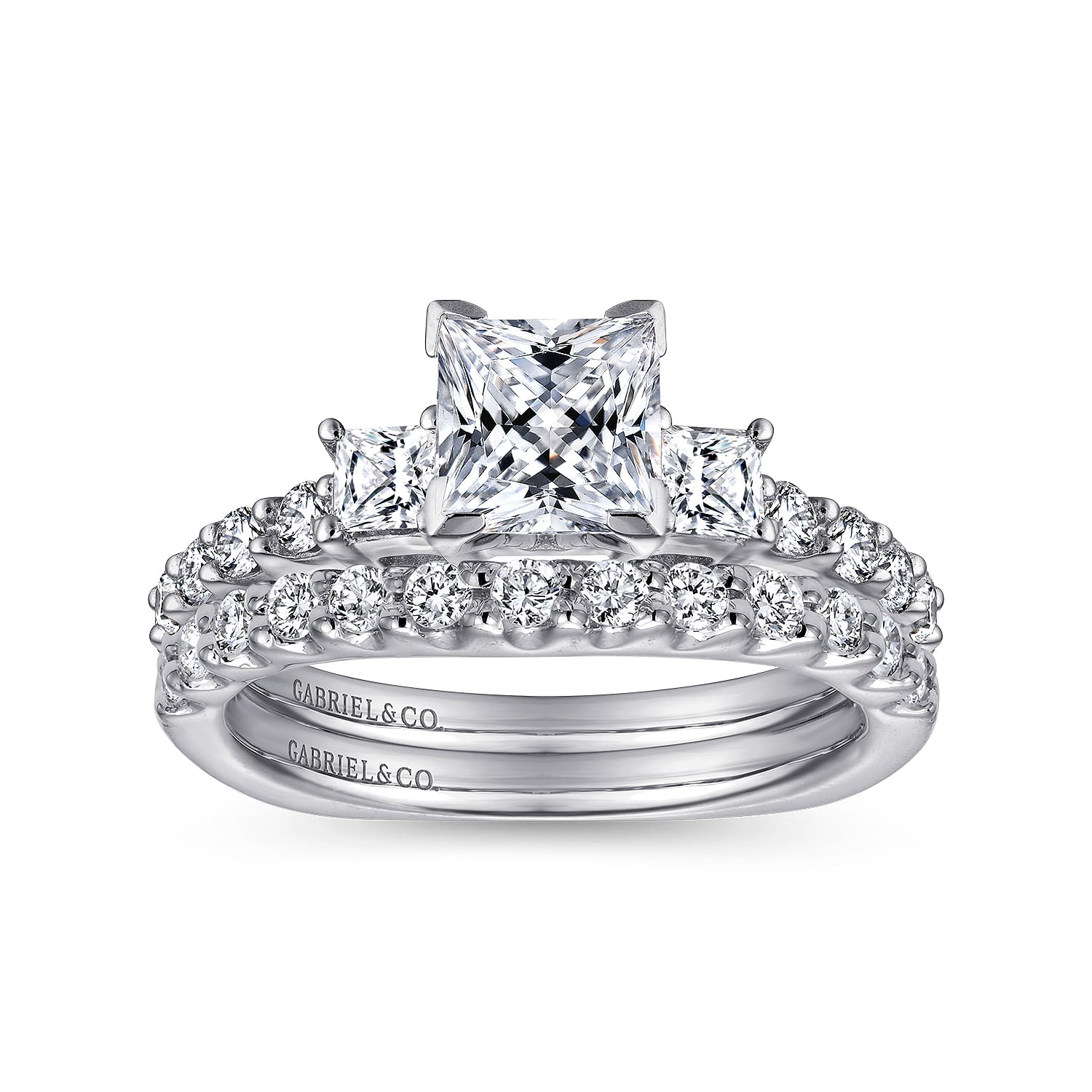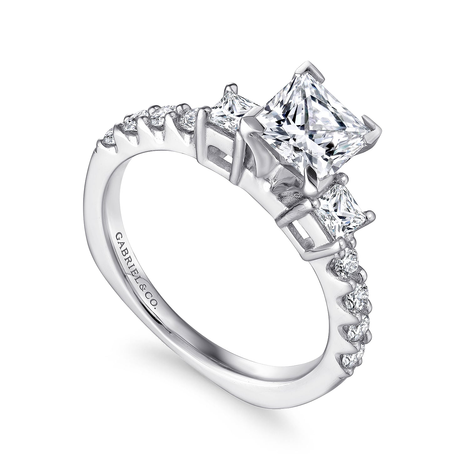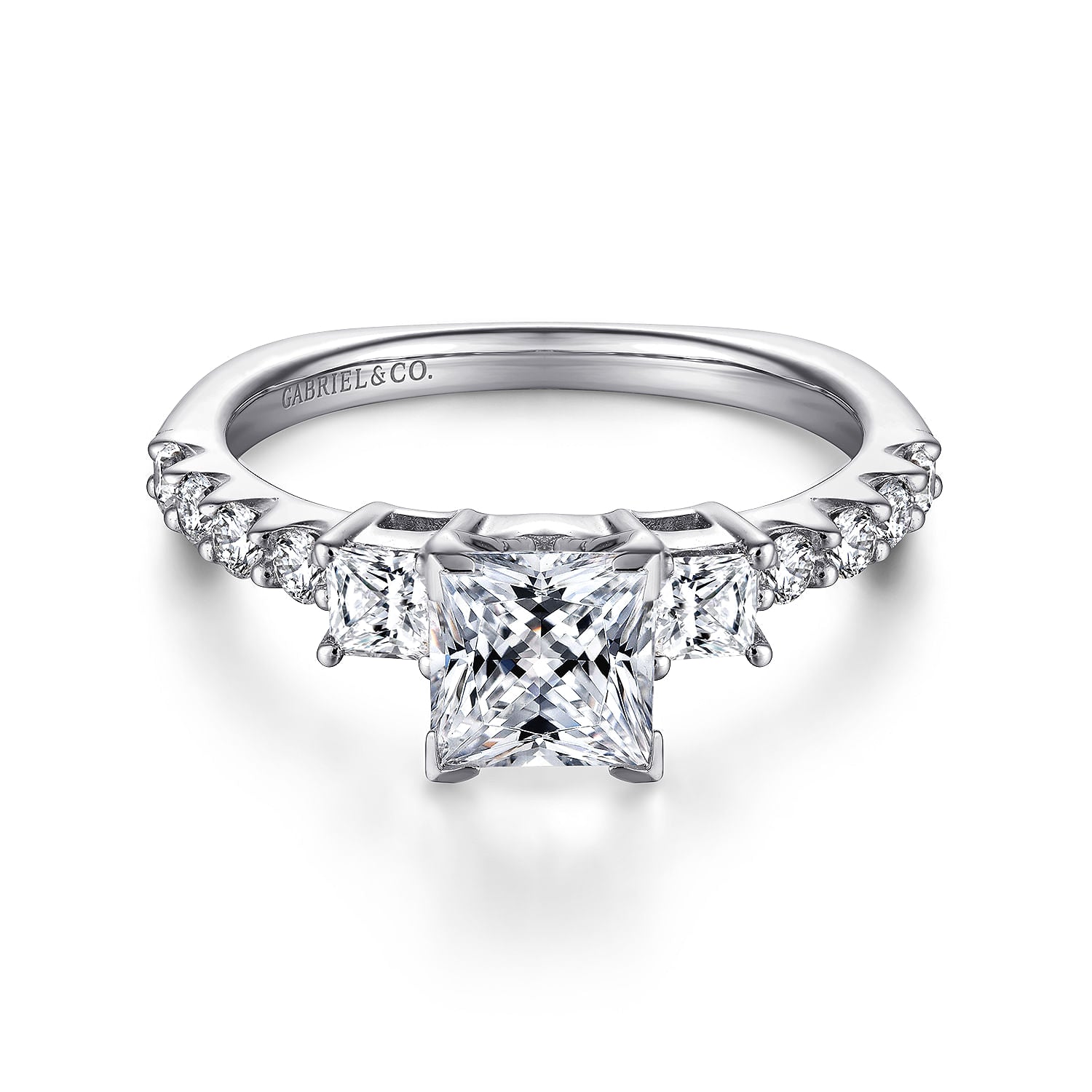 14K White Gold Princess Cut Three Stone Diamond Engagement Ring