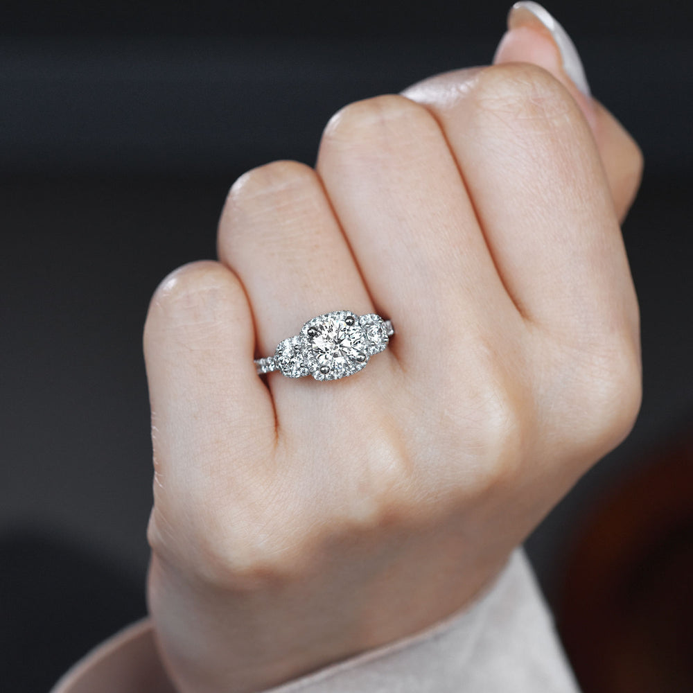 • Default category/engagement rings/3 stone + center stone shape     Round