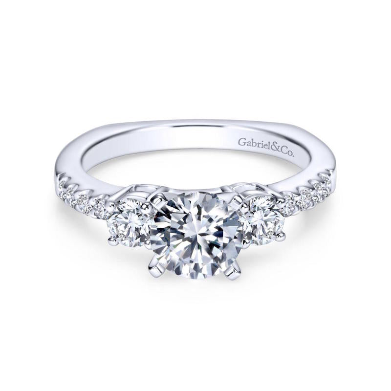 Gabriel & Co. 14k White Gold Contemporary 3 Stone Engagement Ring