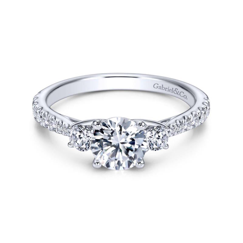 Gabriel & Co. 14k White Gold Contemporary 3 Stone Engagement Ring