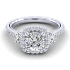 Gabriel & Co. 14k White Gold Victorian 3 Stone Halo Engagement Ring