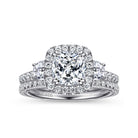 You're reviewing: Vintage Inspired 14K White Gold Cushion Three Stone Halo Diamond Engagement Ring
