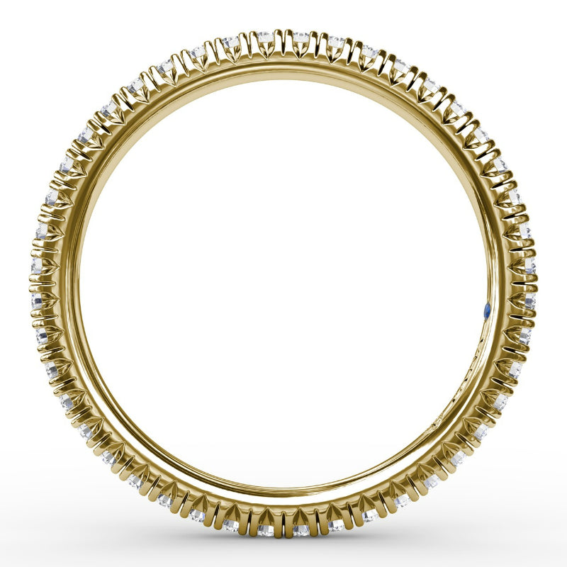 With clean lines and refined elegance, our modern pave eternity band offers something unique for those looking to set themselves apart. This eternity band can be special ordered in any finger size, in Platinum, 18KT & 14KT gold and can be customized for any shape and size centerstone.