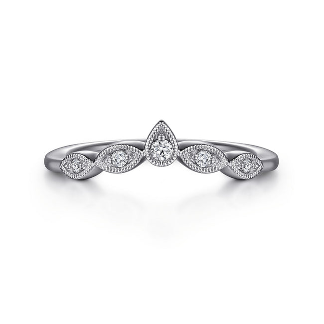 Vintage Inspired 14K White Gold Curved Gold Diamond Anniversary Band