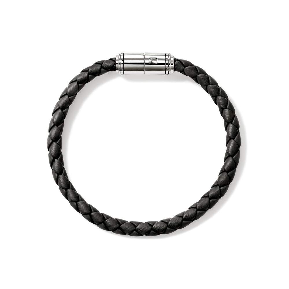 Artisanship meets utility. Featuring an ultra-secure pusher clasp engraved with the John Hardy hallmark, this bracelet is crafted by hand in genuine leather and reclaimed sterling silver.