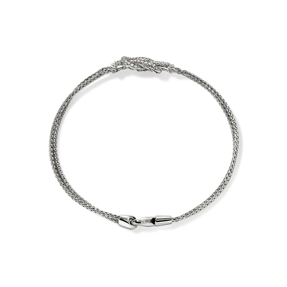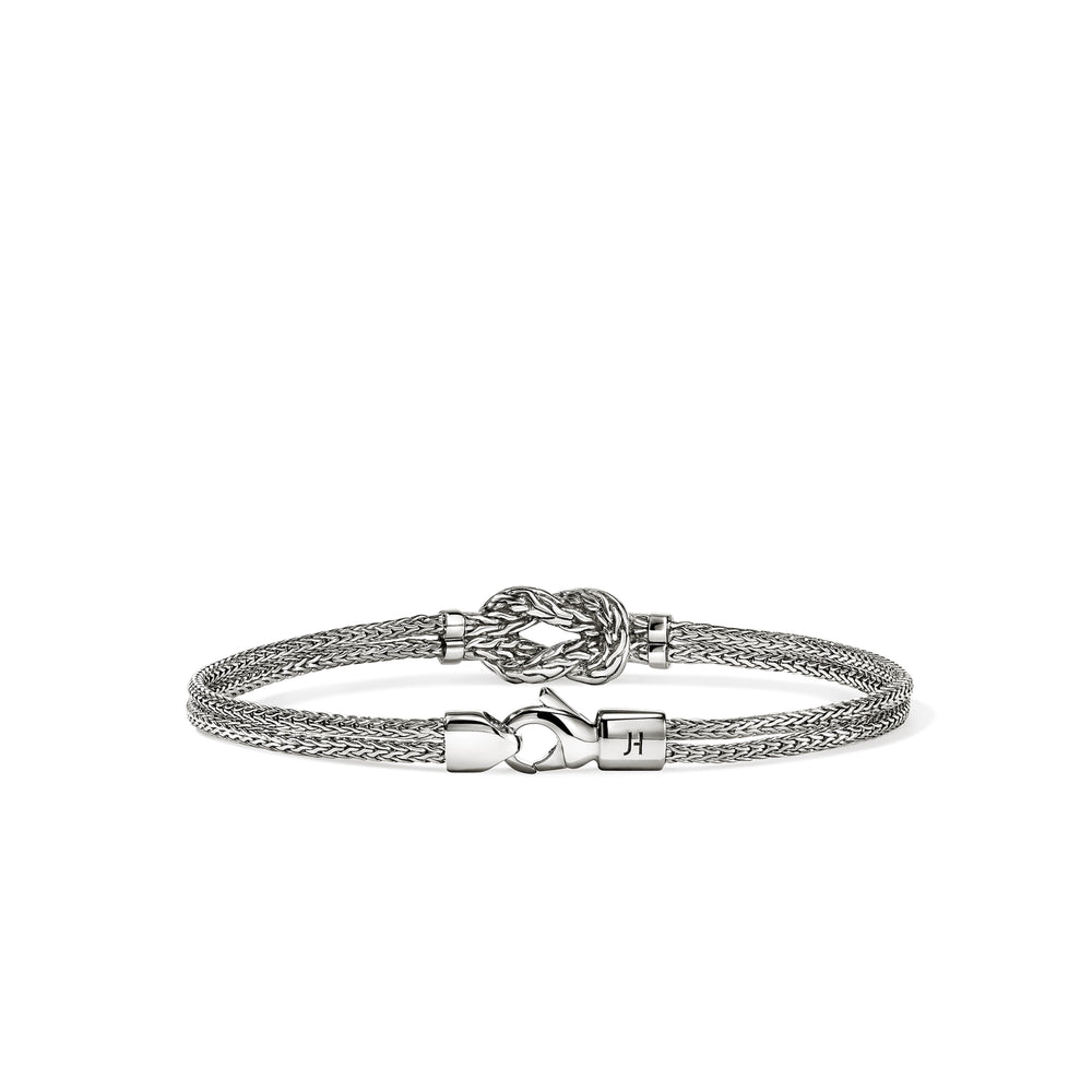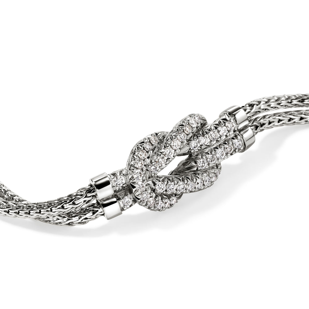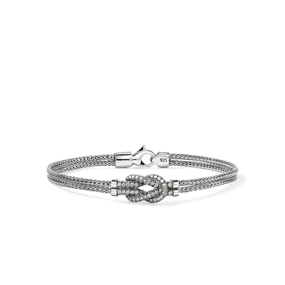 This delicate double row chain bracelet features John Hardy's signature Love Knot motif. Artisan handcrafted in 100% reclaimed sterling silver and ethically sourced white diamonds.