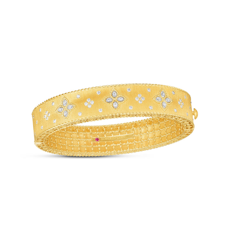 You're reviewing: Roberto Coin 18K Venetian Princess Satin Diamond Bangle - 18K Yellow Gold