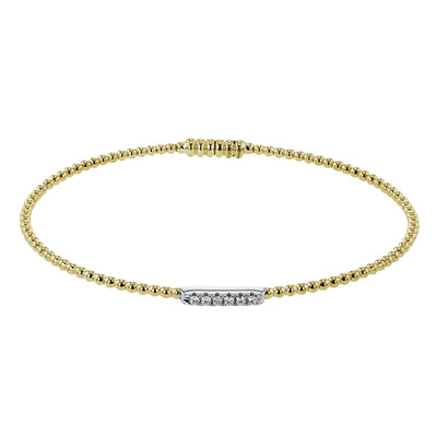 18K white gold beaded stackable bangle accented with 0.08 ctw of white diamonds, and a magnetic closure