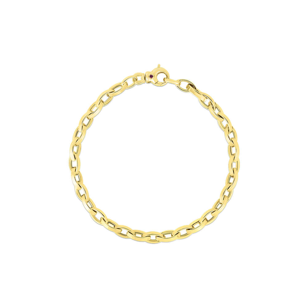 18K Yellow Designer Gold Almond Link 8 Inch Bracelet