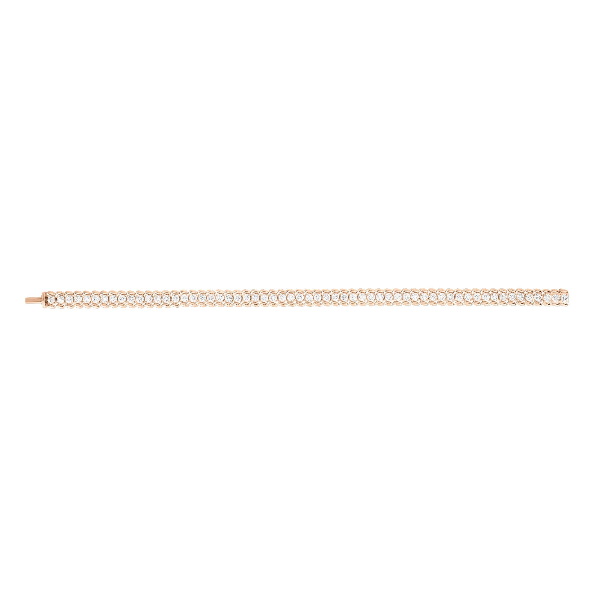 This Classic Diamond bracelet showcases a striking row of shimmering diamonds set in luxurious 18K gold with a ribbed design, creating a bold yet elegant statement. Its intricate yet subtle design make it perfect for elevating any look, whether worn alone or as part of a curated jewelry collection.