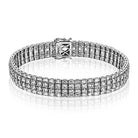 Crafted in 18k white gold, this bracelet makes a bold, modern statement with 4.74 ctw baguette shaped diamonds and 7.68 ctw classic round diamonds.