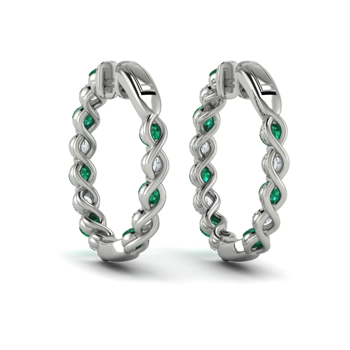 Inside Out Diamond and Emerald Hoop Earrings White Gold