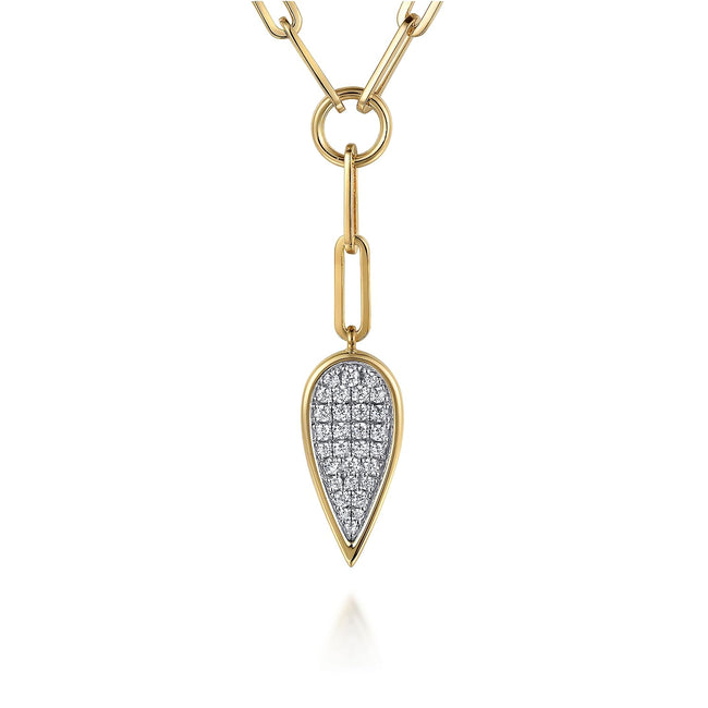 14K White and Yellow Gold Diamond Drop And Hollow Link Chain Y Knots Necklace