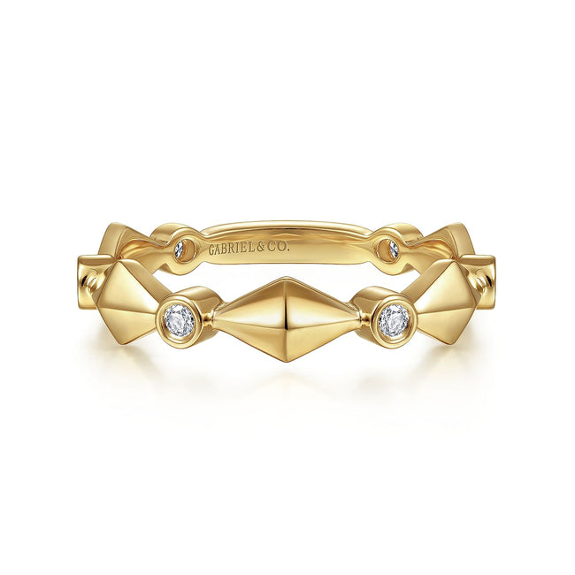 14K Yellow Gold Alternating Geometric and Diamond Station Ring