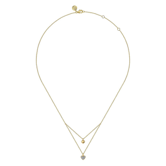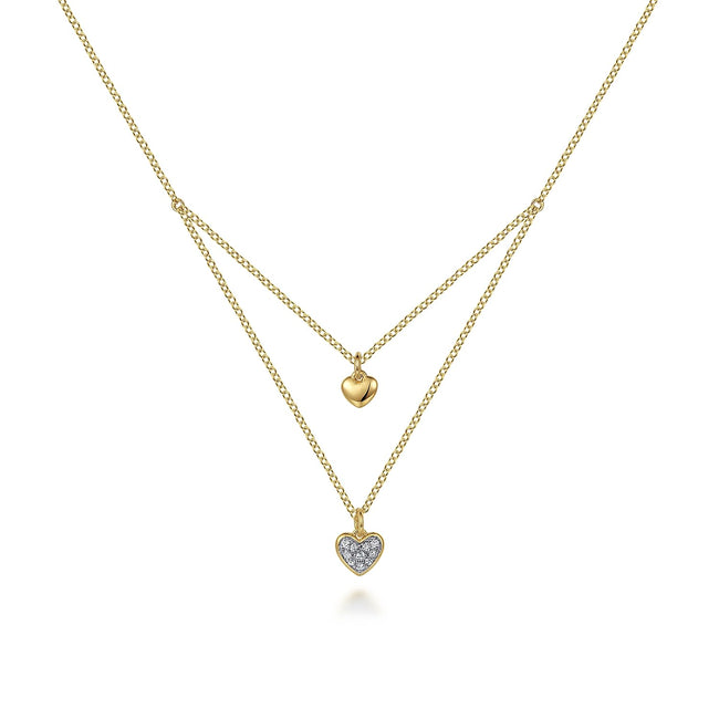 14K Yellow Gold Diamond Double Heart Pendant Necklace