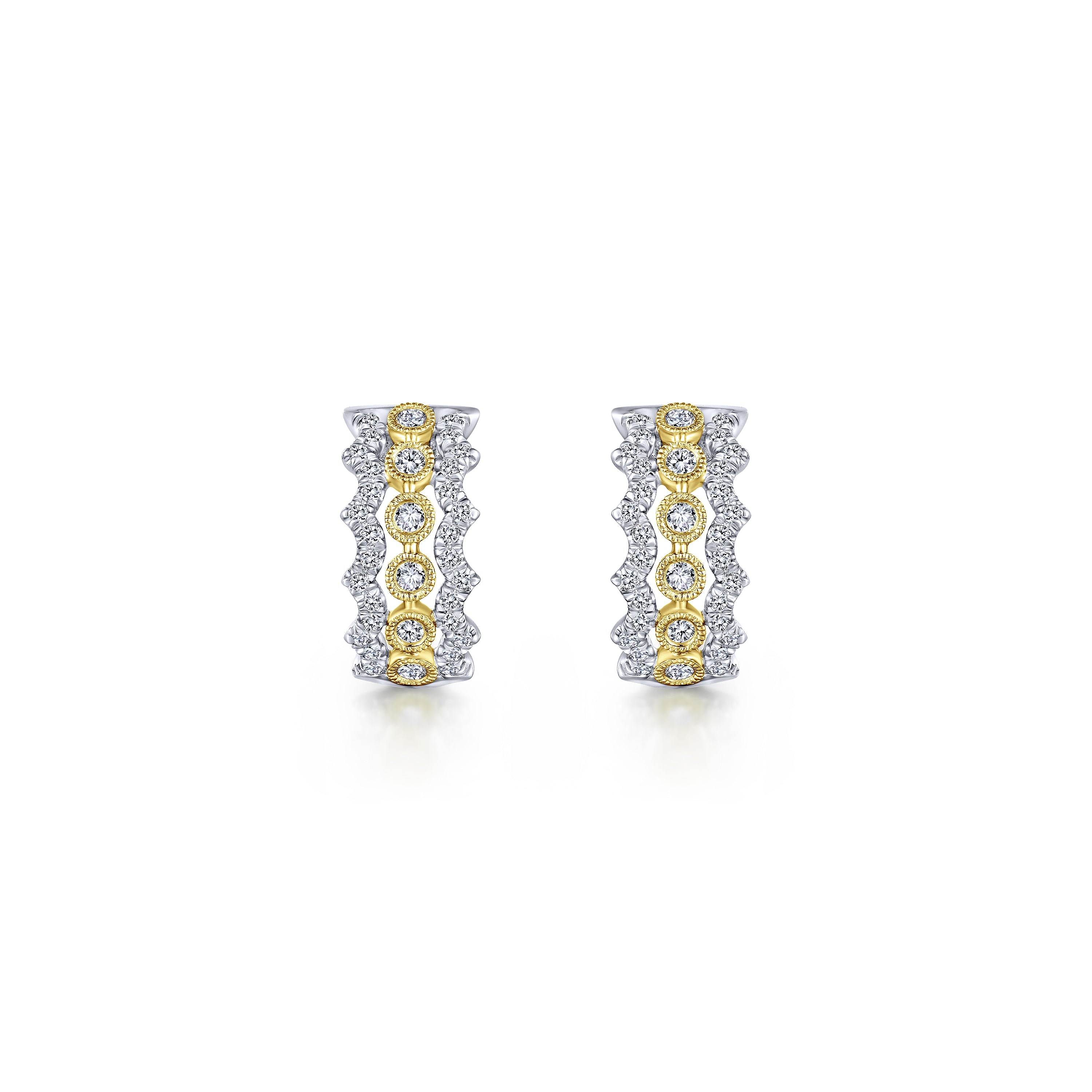 14K Yellow-White Gold 10mm Wide Diamond Huggies