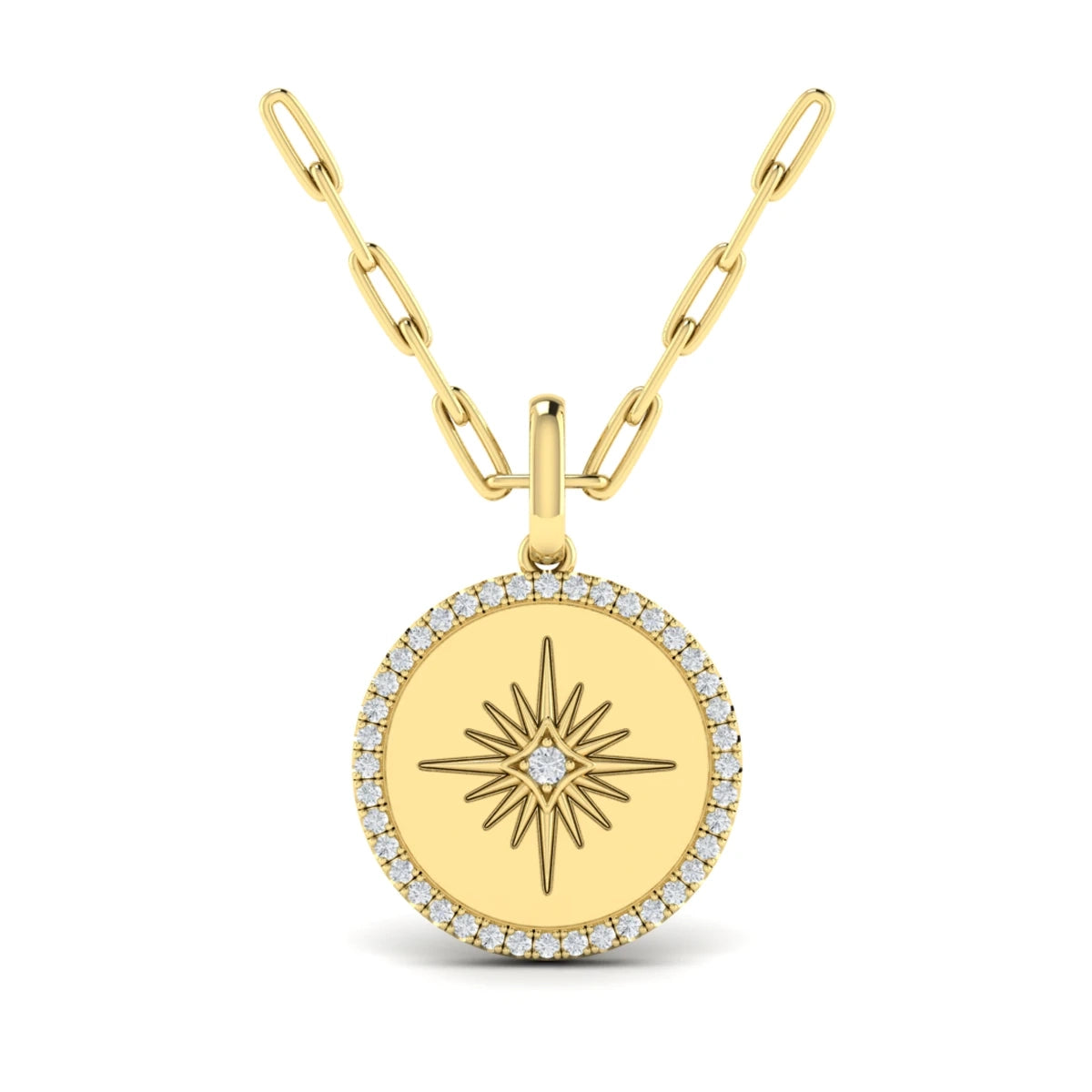 You're reviewing: Center Starburst Diamond and Bezel Pendant Necklace Yellow Gold