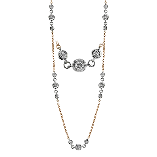 Contemporary and stylish, this necklace design contains 1.02 ctw of white diamonds in various sizes set with 18k white and rose gold.