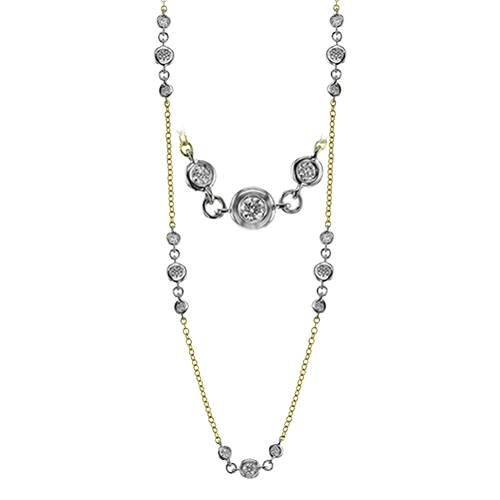 Contemporary and stylish, this necklace design contains 1.00 ctw of white diamonds in various sizes set with 18k white and yellow gold.