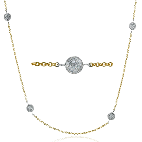 18K Two-tone necklace with 6 white gold diamond stations 0.59 ctw on yellow gold chain, 18"