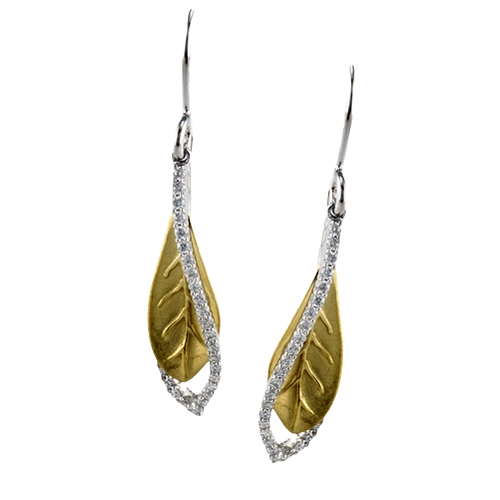 18k yellow gold leaves sway in the breeze, accentuated by lines of .30 ctw of white diamonds.