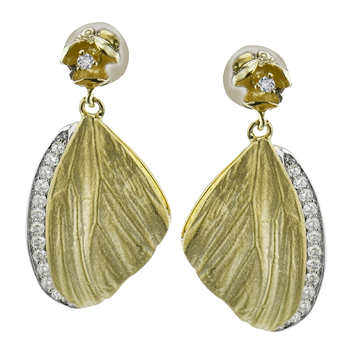 Nature inspired, these delicate yellow gold wing earrings are accented by 0.26 ctw of white diamonds