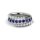 Diamond and Blue Sapphire Three Row Wrap Ring Platinum