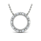 Diamond Baguette Double Open Circle Pendant Necklace Platinum