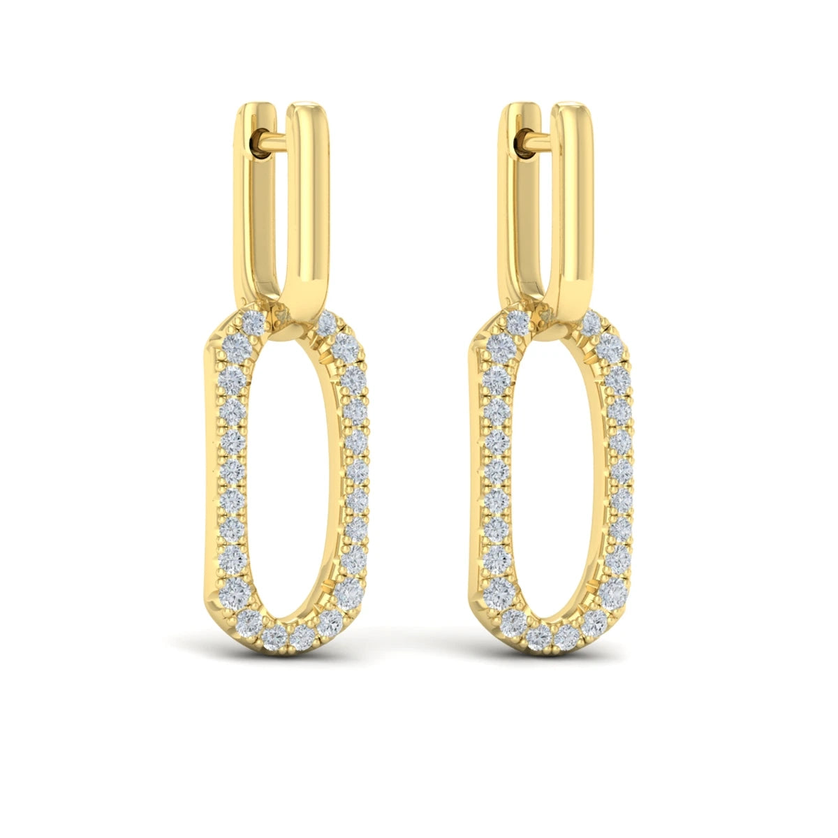 Diamond North South Open Oval Pendant Link Earrings Yellow Gold