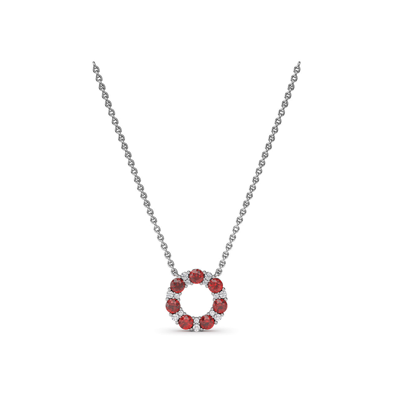 You're reviewing: Fana 14k White Gold Shared Prong Ruby and Diamond Circle Necklace