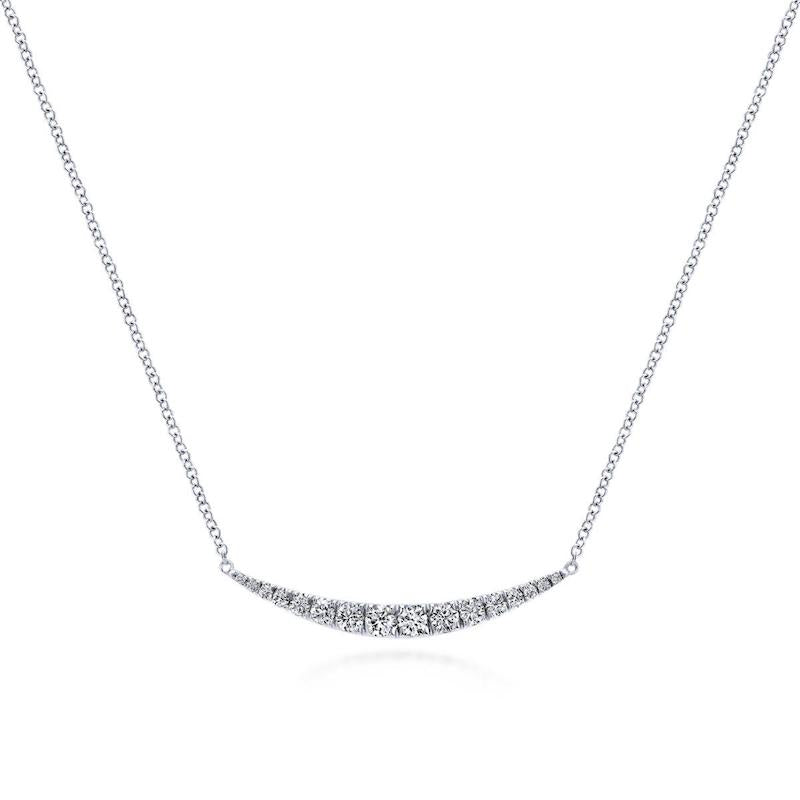 14k White Gold Curved Diamond Bar Necklace