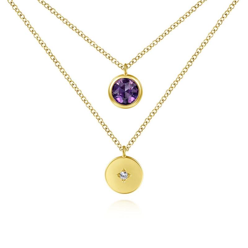 14k Yellow Gold Round Amethyst & Diamond Fashion Necklace