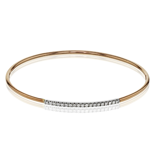 This lovely 18k rose gold bangle contains .13 ctw of white diamonds in a simple line. This bangle is perfect for stacking, or making a delicate statement all on its own.