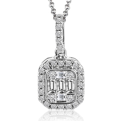 A true classic, this 18k white gold pendent features .28cttw white diamonds.