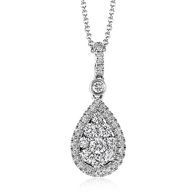 This glimmering teardrop shaped pendant is set with .47 ctw of round white diamonds and suspended from a diamond encrusted bail.