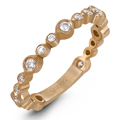 This lovely 18k rose gold band showcases varied sizes of round white diamonds that total .30 ctw. Perfect for stacking.