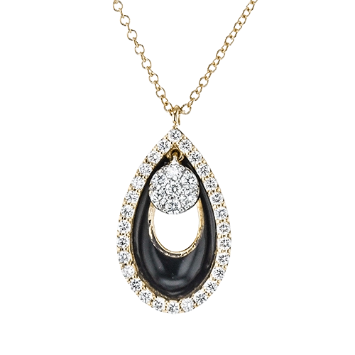 Diamond, enamel, and 18k gold combine in this modern pendant to create a distinctive look.