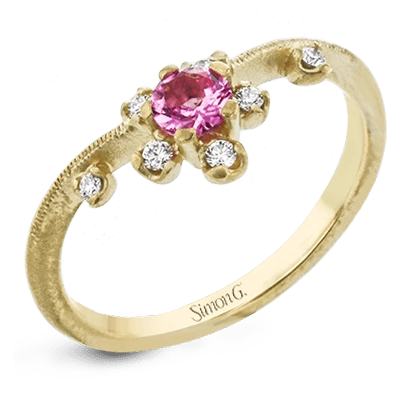 This 18k yellow gold ring provides the ideal sparkle with a .28 ct spinel and .09 ctw of white diamonds.