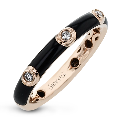 A sleek modern classic, this 18k gold and enamel ring contains .07 ctw of bezel set white diamonds.