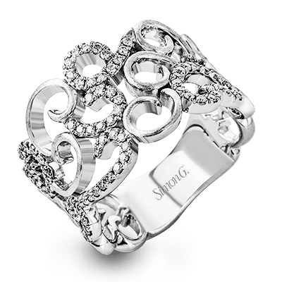 Featuring a romantic vintage-inspired design, this intricate, swirling white gold ring is accentuated by .35 ctw glistening round cut white diamonds.