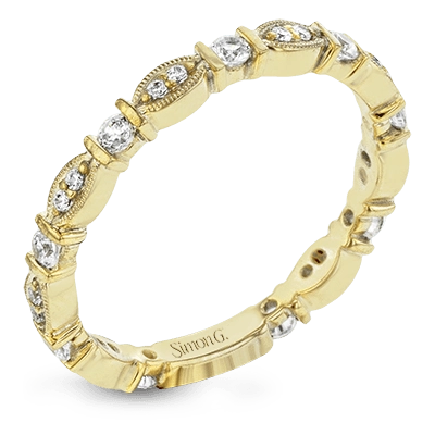 This 18k yellow gold band is perfect for layering with others and contains .31 ctw of white diamonds. Perfect for stacking.