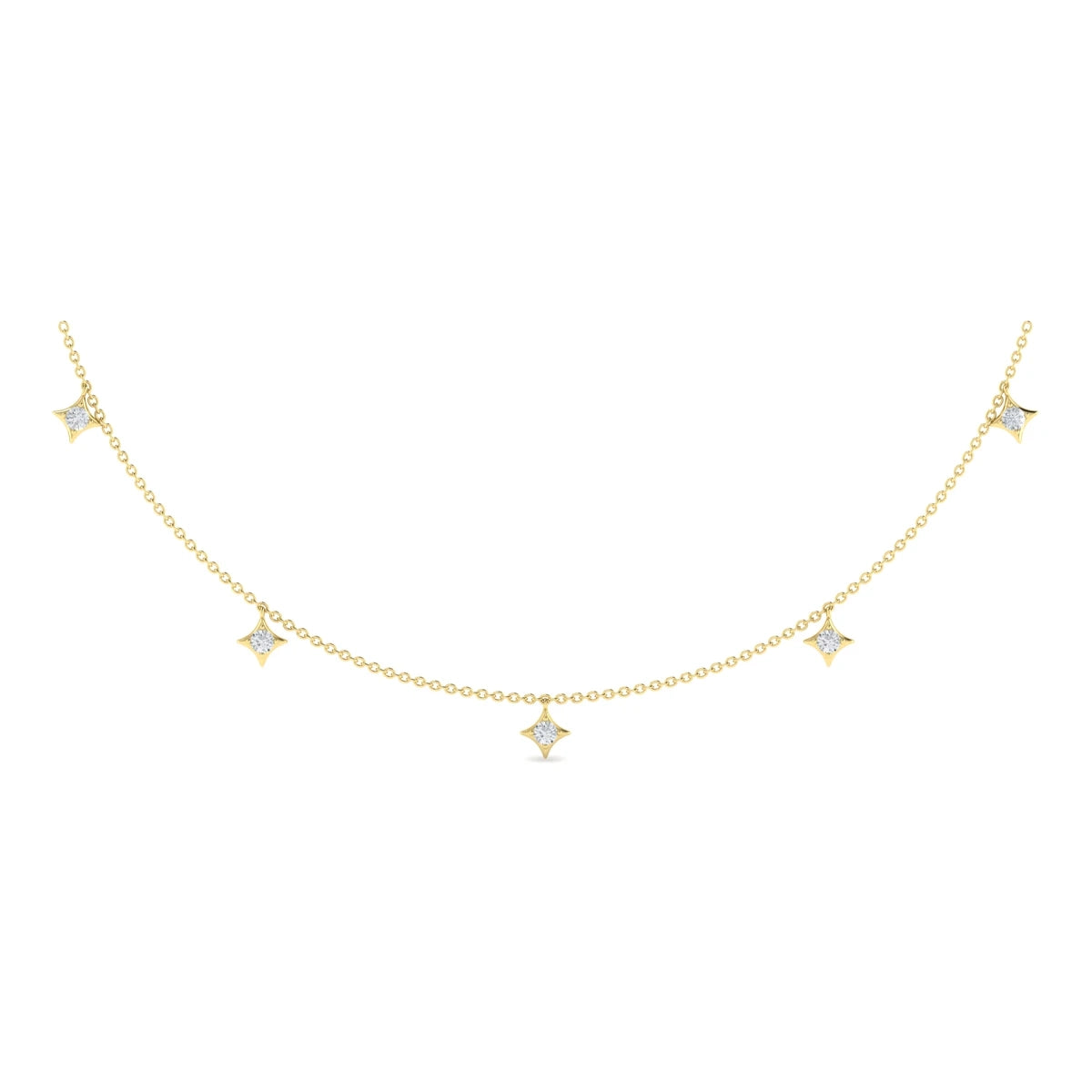 Multi Diamond Vlora Star Tassel Necklace Yellow Gold