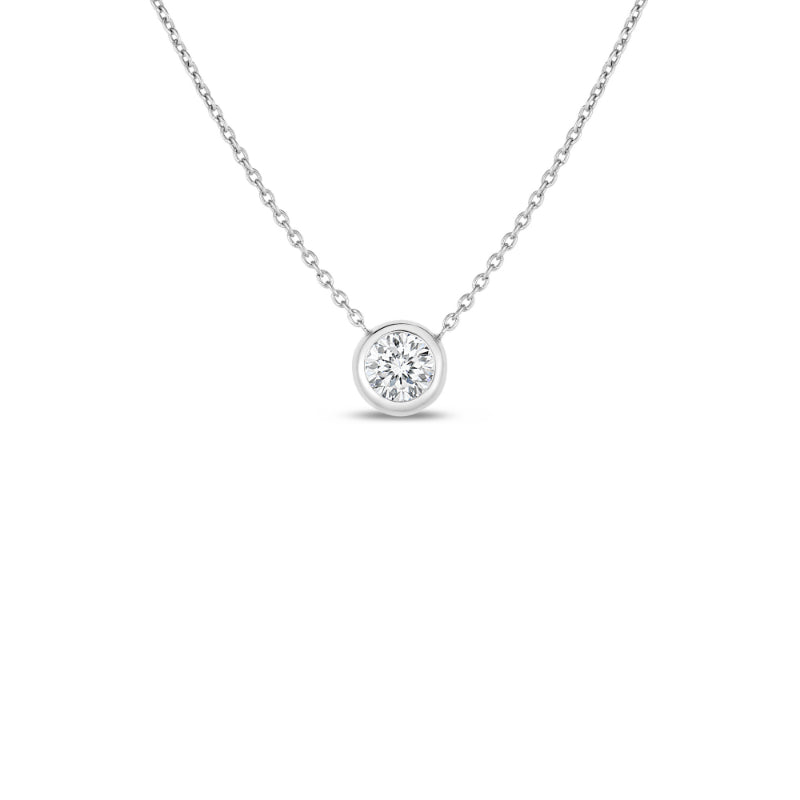 Roberto Coin 18K White Gold Diamonds By The Inch Bezel Set Solitaire Necklace