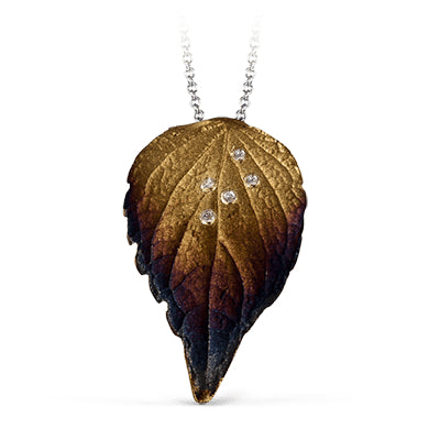 Featuring an incredibly delicate and realistic leaf design, this pendant is set with .04 ctw of sparkling round white diamonds.