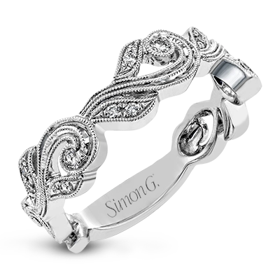 This nature-inspired 18k white gold band is set with the perfect touch of .13 ctw of white diamonds.