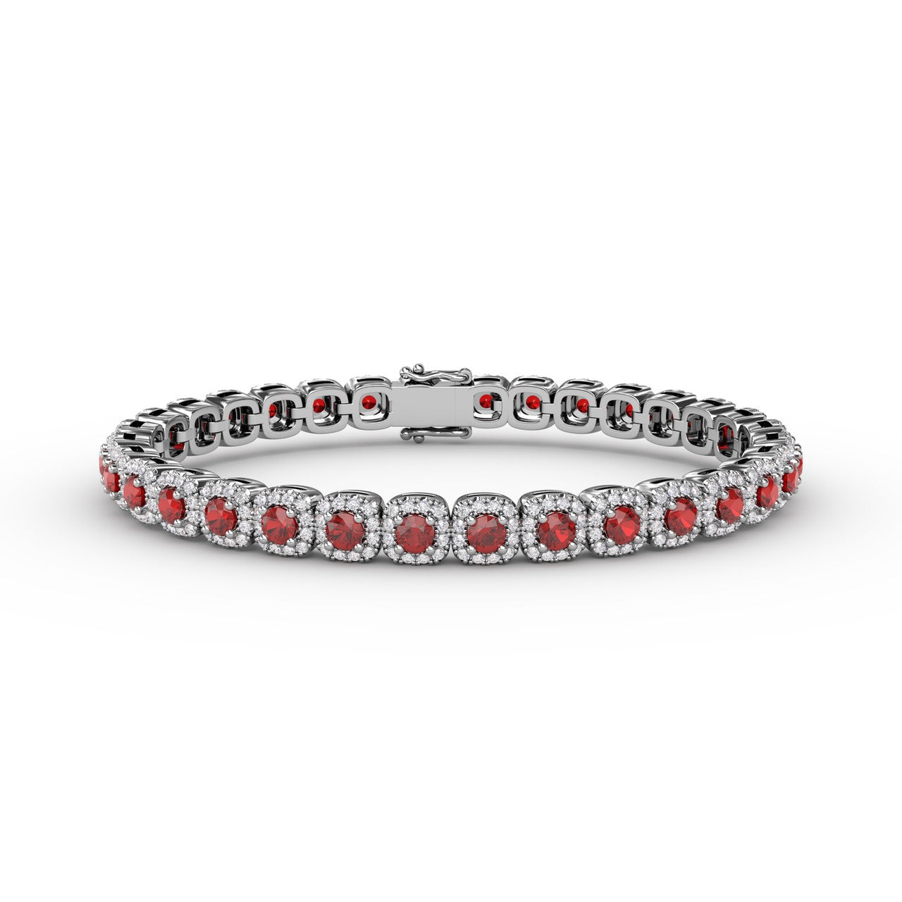 This elegant cushion cut ruby and diamond bracelet comes in a variety of material types like 14k white gold, yellow gold, rose gold and can be customized. Fana gemstone bracelets are perfect for that special woman in your life.