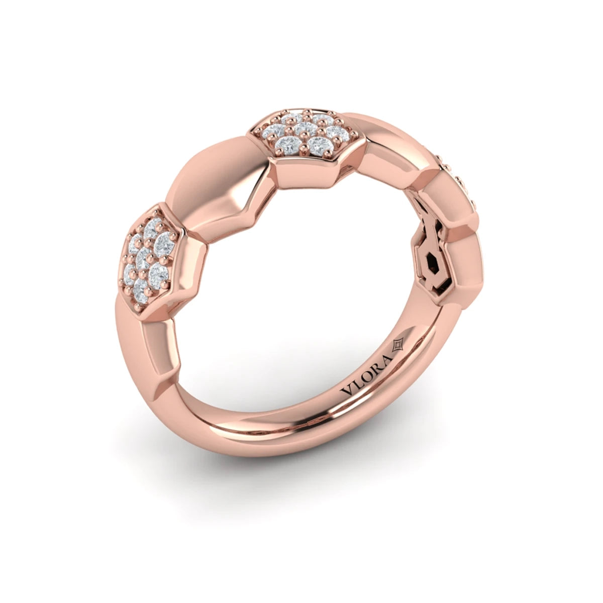 Alternating Diamond Cluster Honeycomb Ring Rose Gold