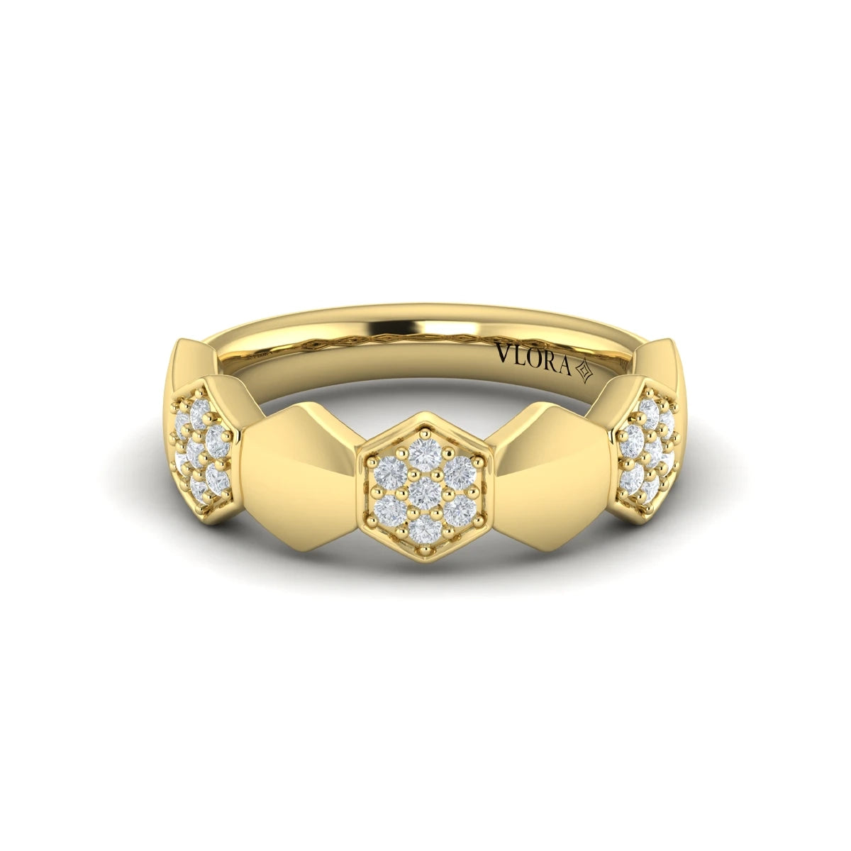 Alternating Diamond Cluster Honeycomb Ring Yellow Gold
